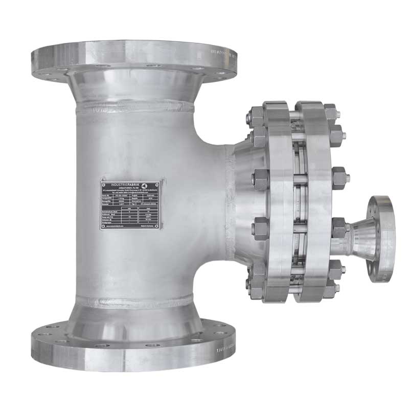 Armaturenfabrik Industriefabrik Schneider Schutzsieb Typ TF in T-Form aus Edelstahl mit Deckel-Schwenkvorrichtung, DN100–DN1000, für industrielle Anwendungen. - Individuelle Anfertigung und Produktion nach Kundenwunsch